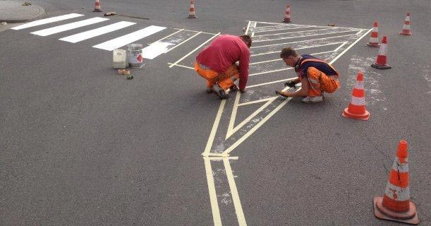 Nanášením vysoce přilnavého dvousložkového materiálu Verplast. Tento materiál se vyznačuje vysokou přilnavostí k asfaltovým a betonovým povrchům. Je vysoce odolný proti otěru a obsahuje barevné pigmenty a skleněné korálky pro zvýšení noční viditelnosti.